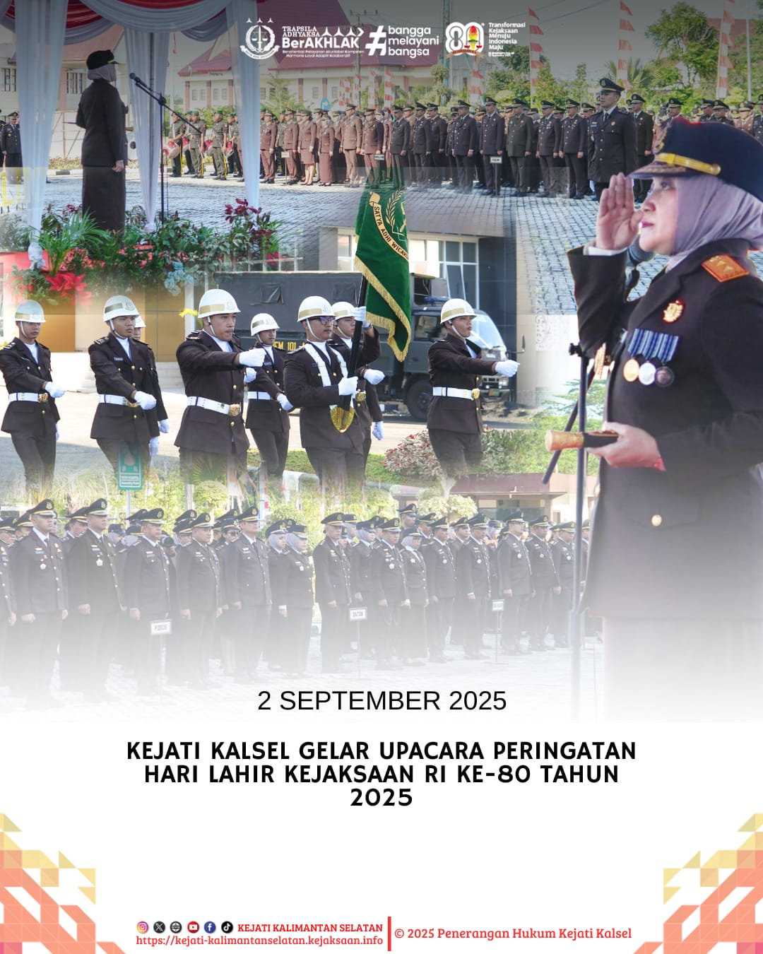 BANJARBARU || Bedanews.com - Kejaksaan Tinggi Kalimantan Selatan melaksanakan Upacara Peringatan Hari Lahir Kejaksaan Republik Indonesiake-80 Tahun 2025 di...