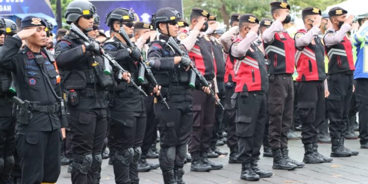 Demak – bedanews.com – Polres Demak menggelar Apel Gabungan Kesiapan Pengamanan Malam Pergantian Tahun 2023 di Alun-alun Simpang Enam Demak, Sabtu (31/12/2022) sore. Apel tersebut di ikuti oleh personel Polres Demak, Kodim 0716/Demak, Satuan Brimob Polda Jateng, Satpol PP, BPBD, Dishub, PMI dan unsur pengamanan lainnya.