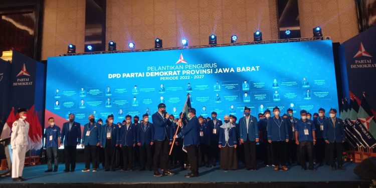 BANDUNG || – Ketua Umum Partai Demokrat, Agus Harimurti Yudhoyono (AHY) melantik Ketua baru DPD Partai Demokrat Jawa Barat periode 2022-2027, Anton Sukkartono Suratto beserta jajaran pengurusnya di Hotel Trans Kota Bandung, Selasa (12/4/2022).