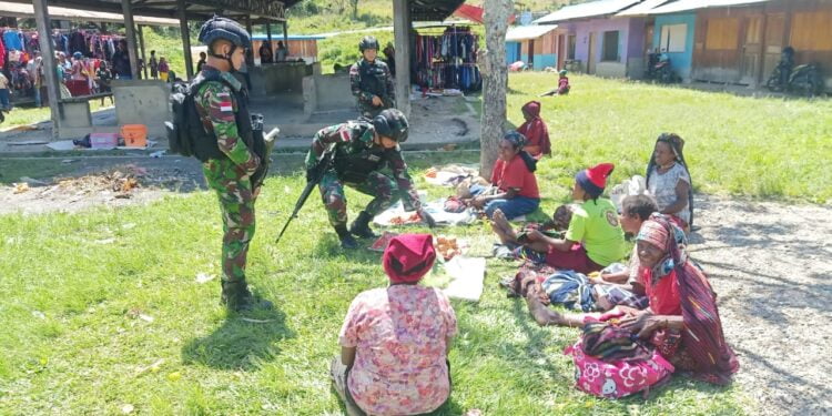 Jayawijaya – bedanews.com – Kembali beraksi, Satgas Pamtas RI-PNG Yonif Raider 142/KJ memanfaatkan hari yang ada, melakukan Pembinaan Teritorial dan Komunikasi Sosial di Pasar Rakyat Bolakme bersama warga di Distrik Bolakme, Kabupaten Jayawijaya, Papua, Senin (01/08/2022).