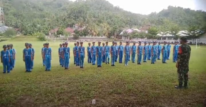Pacitan – bedanews.com – Sebanyak 144 pelajar dari SMP 6 Sudimoro, Kab. Pacitan menerima pembekalan tentang wawasan kebangsaan dan pelatihan materi PBB dari anggota Koramil 0801/09 Sudimoro, Kodim 0801/Pacitan, Senin (04/03/2024).