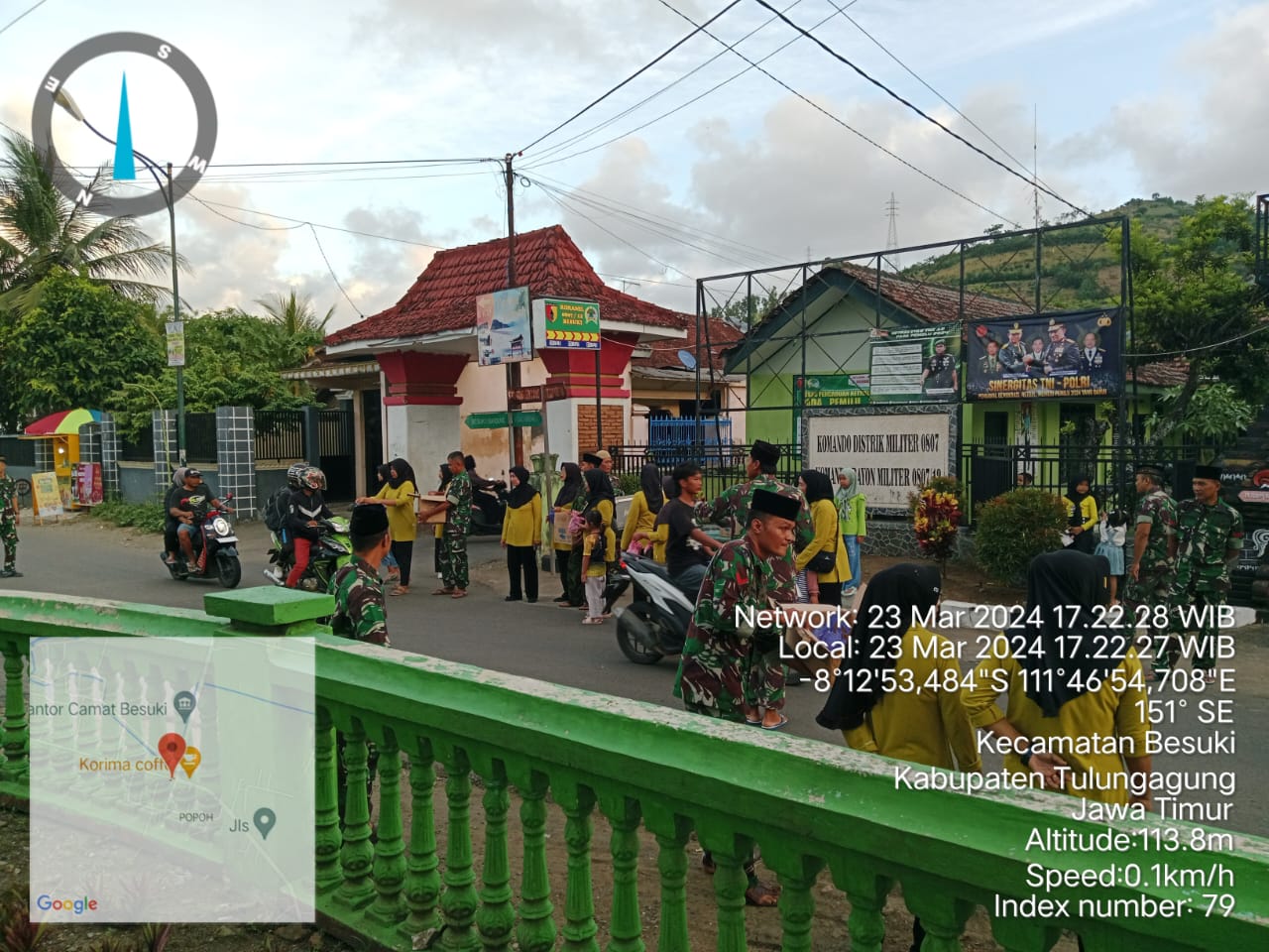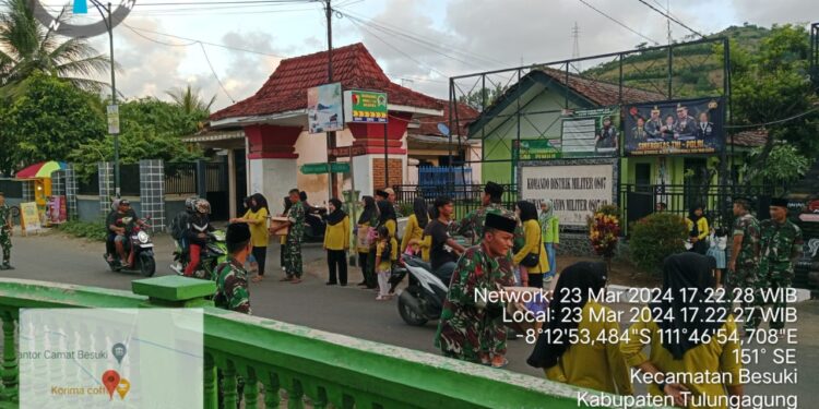 Tulungagung – bedanews.com – Pgs. Danramil Tipe B 0807/12 Besuki bersama anggota Koramil Besuki dan Ibu Persit mengadakan kegiatan bagi takjil gratis di jalan umum depan Makoramil Besuki. Kegiatan ini merupakan bagian dari upaya untuk menyemarakkan bulan suci Ramadhan serta meringankan beban masyarakat yang sedang menjalankan ibadah puasa, Sabtu (23/03/2024).