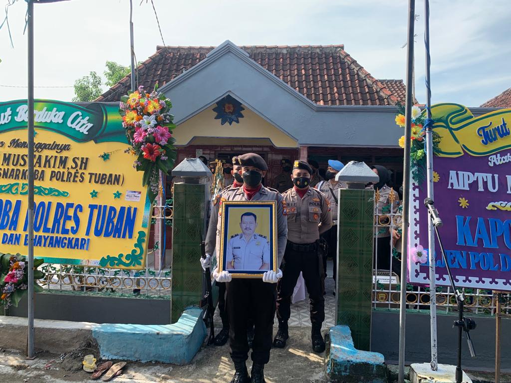 Upacara persemayaman jenazah Almarhum Aiptu Mustakim dilaksanakan di rumah duka di Dusun Keting RT.06/RW 01 Desa Keting, Kecamatan Sekarang, Kabupaten Lamongan dipimpin oleh Wakapolres Tuban, Kompol Palma Fitria Fahlevi, S.IP, S.I.K., M.I.K, pada Jum’at (10/06) siang.