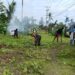 Babinsa Koramil 1710-07/Mapurujaya Ajak Warga Gotong Royong Bersihkan Halaman Gereja