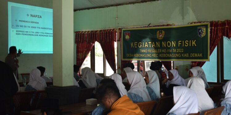 Untuk itu, Jajaran TNI, Polri menggelar penyuluhan Keamanan dan Ketertiban Masyarakat (Kamtibmas) dalam rangka Tentara Manunggal Membangun Desa (TMMD) ke-114 tahun 2022 dengan tema ‘TMMD Dedikasi Terbaik Membangun NKRI“ pada Sabtu (13/8) di Aula kantor Desa Kebonagung, Kecamatan Kebonagung, Kabupaten Demak.