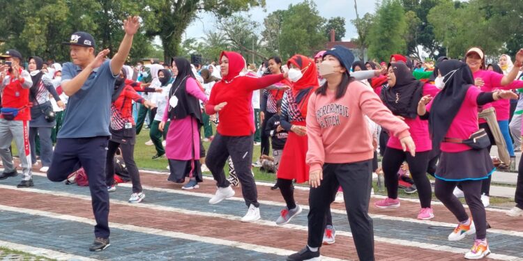 OKU Timur, Bedanews.com – Masyarakat Kecamatan Martapura sejak pukul 06.30 terlihat sudah memadati Taman Tani Merdeka untuk mengikuti Senam Bersama Bupati, Wabup dan Ketua KORMI Sumatera Selatan Rabu(9/2/2022)