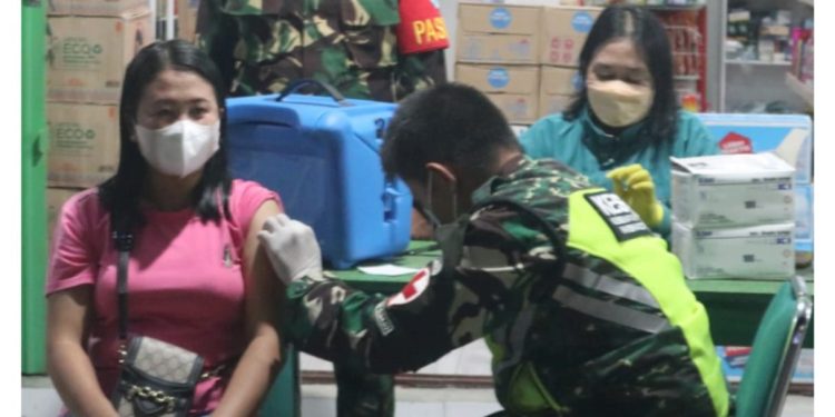 Muara Teweh – bedanews.com – Komandan Kodim 1013/Muara Teweh, Letkol Inf Edi Purwoko gelar Serbuan Vaksinasi untuk membantu pemerintah dalam percepatan vaksinasi Covid-19 secara Mobile di Jl. A. Yani Kel. Melayu Kec. Teweh Tengah Kab. Barito Utara (Depan Koperasi Kartika Madani Kodim 1013/Mtw), Kamis (24/02/2022).