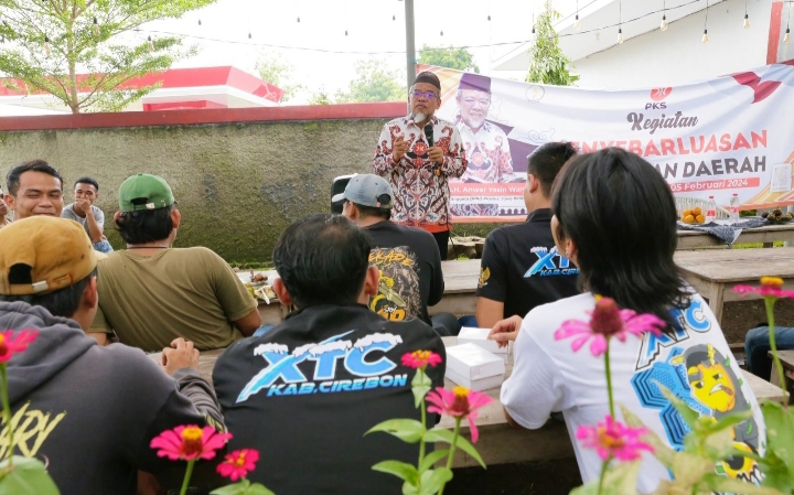 *CAPTION: Anggota DPRD Provinsi Jawa Barat Daerah Pemilihan XII (Kota/Kabupaten Cirebon dan Kabupaten Indramayu) Drs.H. Anwar Yasin saat melaksanakan kegiatan Penyebarluasan Peraturan Daerah di Angkringan Safa Sari, Kecamatan Sindang, Kabupaten Cirebon. Minggu (04/02/2024).