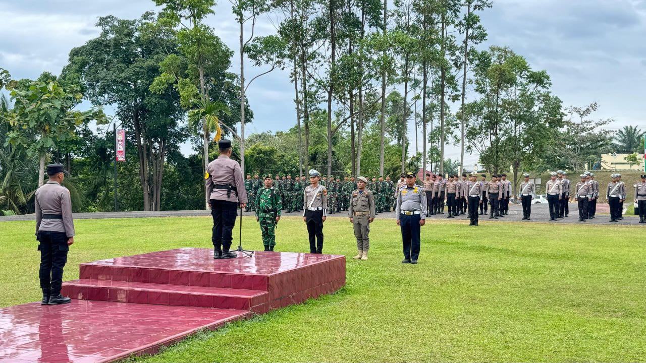 Teluk Kuantan – Komandan Koramil 02/Kuantan Tengah Kodim 0302/Inhu Kapten Inf J. Sihombing mengikuti Kegiatan Gelar Pasukan Ops Lancang Kuning 2025 bertempat di Halaman Mapolres Kuansing. Senin (14/07/2025).