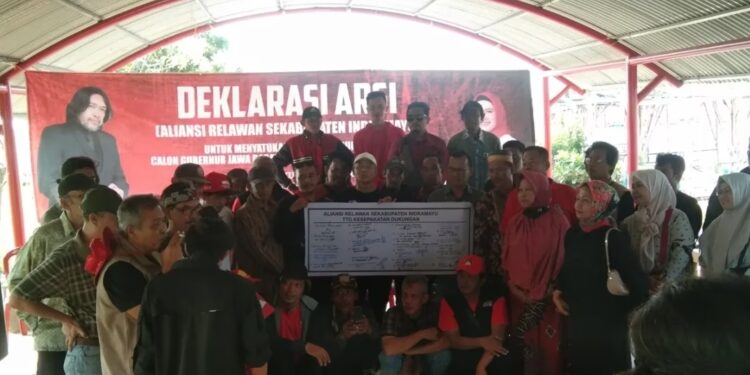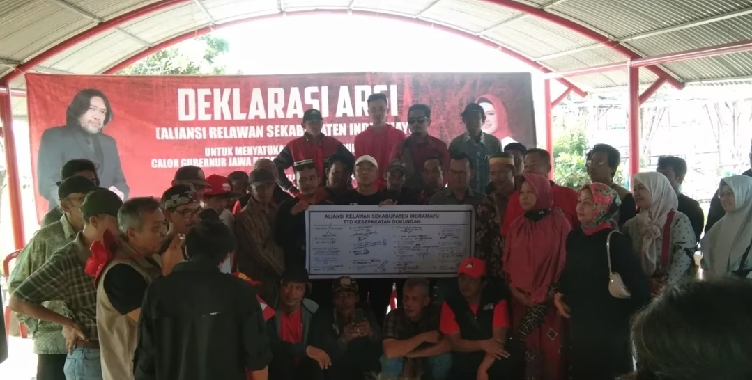 CIREBON,- Menaikan elektabilitas Ono Surono dan Nina Agustina, Sabtu (27/7/2024), sekitar 72 peserta yang hadir dari 27 relawan di Indramayu tergabung dalam Aliansi Relawan se-Kabupaten Indramayu (ARSI) mendeklarasikan diri dan sepakat menyatukan suara keduanya sebagai Calon Gubernur Jawa Barat dan Bupati Indramayu dua periode.