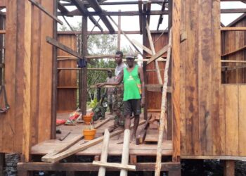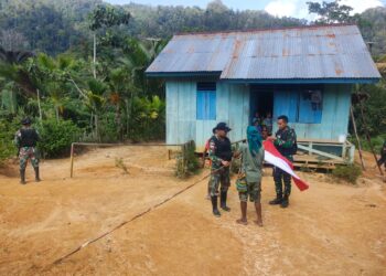 Menyambut HUT RI Ke-77 Tahun, Satgas Yonif 126/KC Kibarkan Bendera Merah Putih Di Rumah Masyarakat Perbatasan Papua