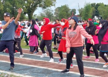 Antusias Masyarakat Ikut Senam Bersama Bupati OKU Timur