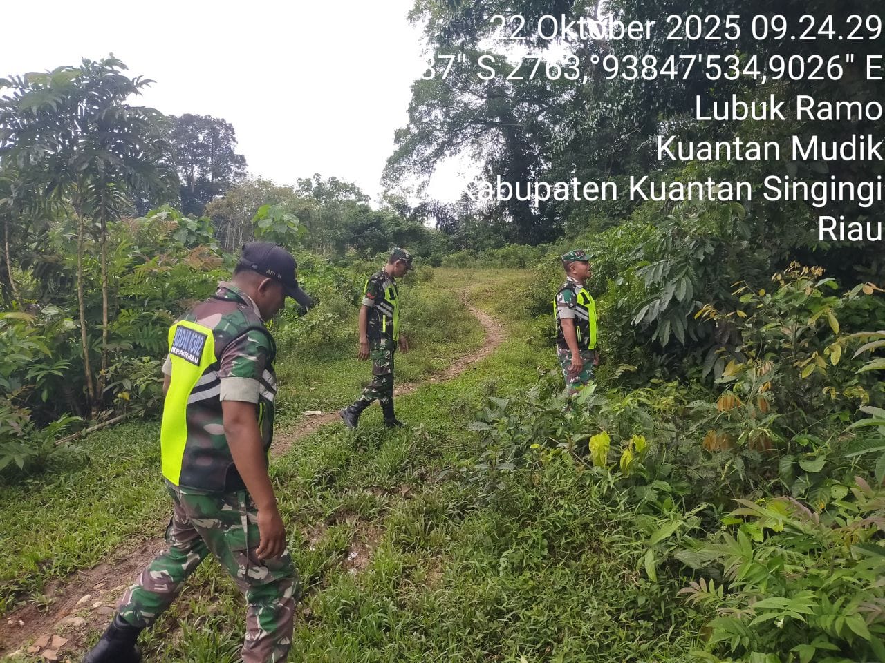 Babinsa Koramil 08/KM Kodim 0302/Inhu Sertu Hendi Saputra bersama 3 orang anggota Lainnya melaksanakan kegiatan patroli pencegahan kebakaran hutan dan...