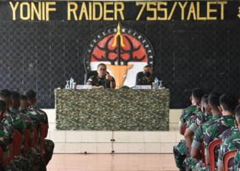 Merauke - bedanews.com - Danrem 174/ATW Merauke, Brigjen TNI E. Reza Pahlevi, S.E didampingi para Kasi Korem melaksanakan kunjungan kerja...