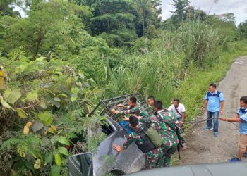 Aksi Heroik Anggota TNI di Papua, Satgas Yonif 126/KC Evakuasi Kendaraan Yang Hampir Jatuh ke Jurang