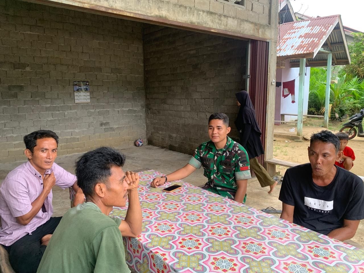 Teluk Kuantan - Babinsa Koramil 02/KT Kodim 0302/INHU Koptu Indra EKa Putra melaksanakan Komunikasi Sosial (Komsos) bersama masyarakat Kel. Sungai...