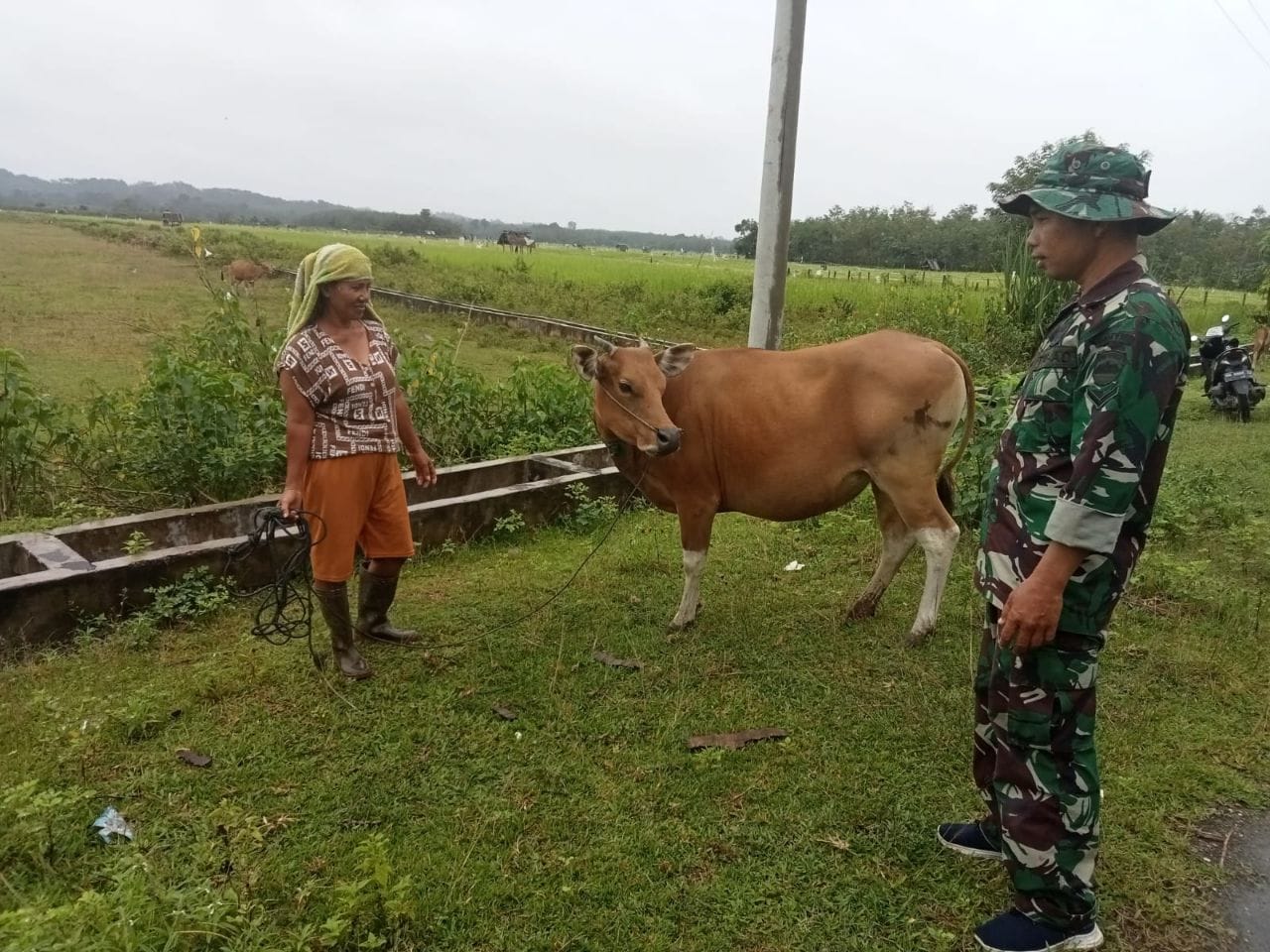 Babinsa Koramil 08/KM Kodim 0302/Inhu Serda Ari Waluyo melaksanakan sosialisasi dan pengecekan hewan ternak milik warga dalam rangka mewaspadai wabah...
