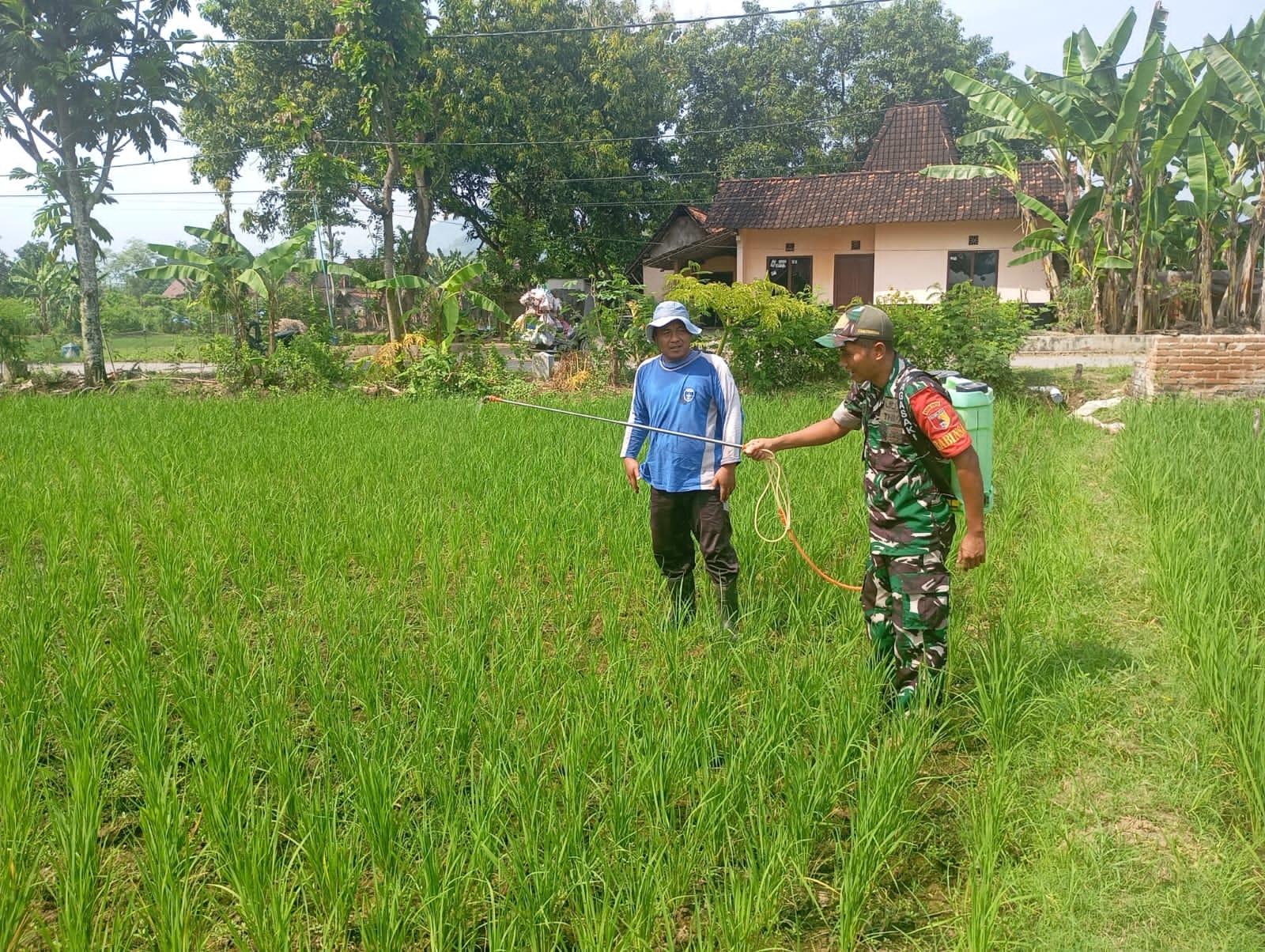 Babinsa Kodim Ponorogo Bantu Petani Semprot Gulma Tanaman Padi