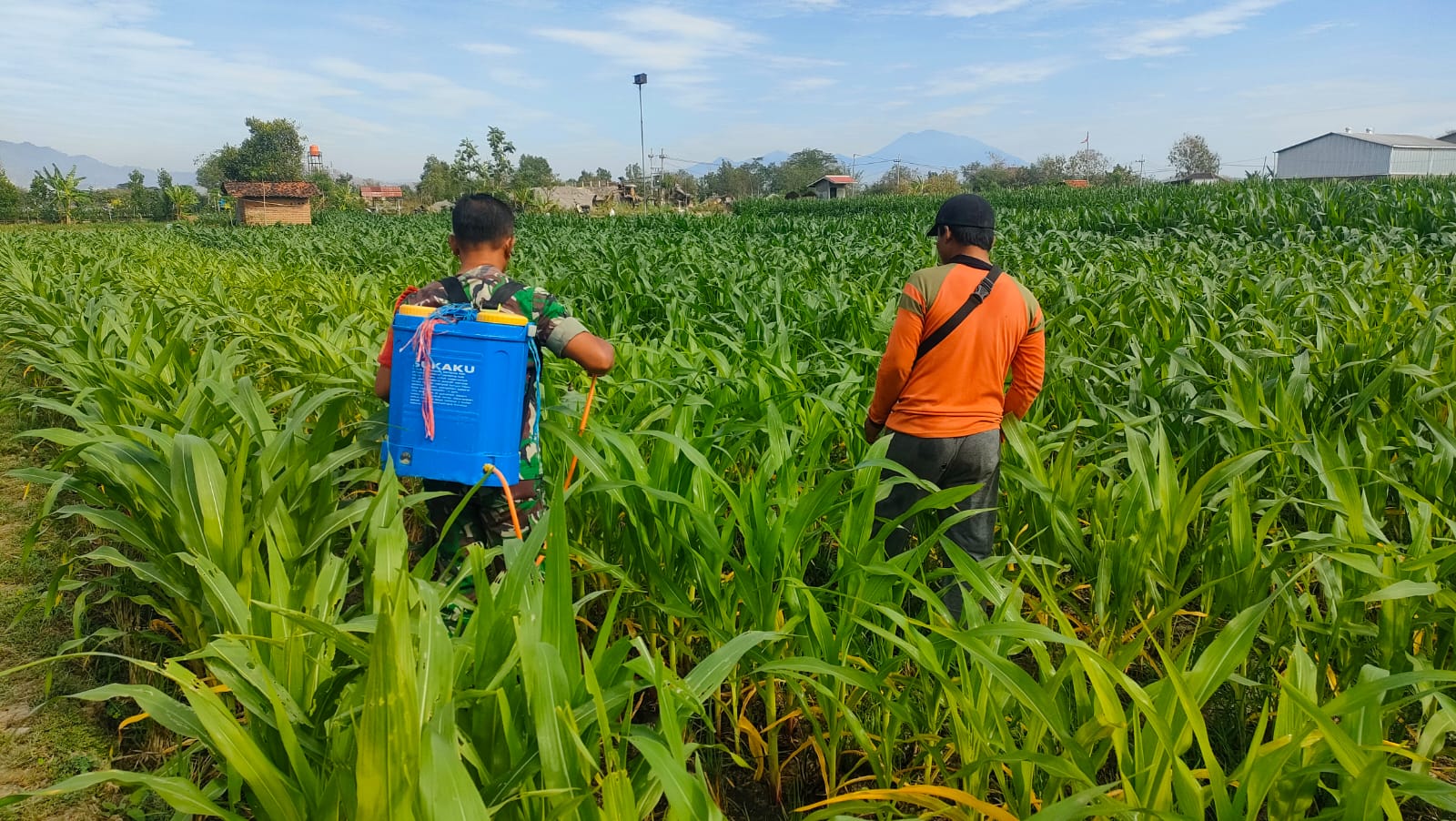 “Saat ini kami bersama Pak Heri salah satu petani yang tergabung dalam Poktan (Kelompok Tani) Maju di Dukuh Tengah Desa Muneng dan sedang melakukan penyemprotan tanaman jagung di lahan pribadi,” kata Serka Yaudi Slamet, Babinsa Muneng tersebut.
