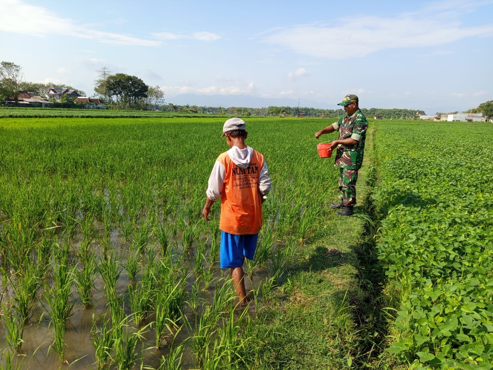 “Bapak Kardi merupakan salah satu petani yang ada di Desa binaan saya yang saat ini sedang menanam padi di sawah seluas 1,5 kotak dan hari ini sedang melakukan perawatan dan pemupukan padi,” kata Sertu Sudarwanto yang berharap bahwa aksinya tersebut bisa berdampak positif bagi kemajuan pertanian di wilayah Desa binaan.