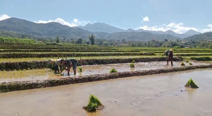 “Salah satu kegiatan kami hari ini yaitu, membantu Bapak Warno dan keluarga yang tergabung dalam Poktan (Kelompok Tani) Giri Mulyo dan sedang melakukan aktivitas penanaman padi di lahan pribadi,” ucap Kopka Edi S.