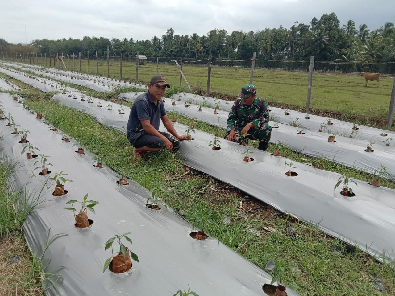 Babinsa Koramil 08/KM Kodim 0302/Inhu Serda Nopin melaksanakan pendampingan serta Mengecek pertumbuhan tanaman cabe milik warga Di Desa Pulau binjai Kecamatan kuantan mudik Kabupaten kuantan singingi. Jumat ( 10/10/2025 ).