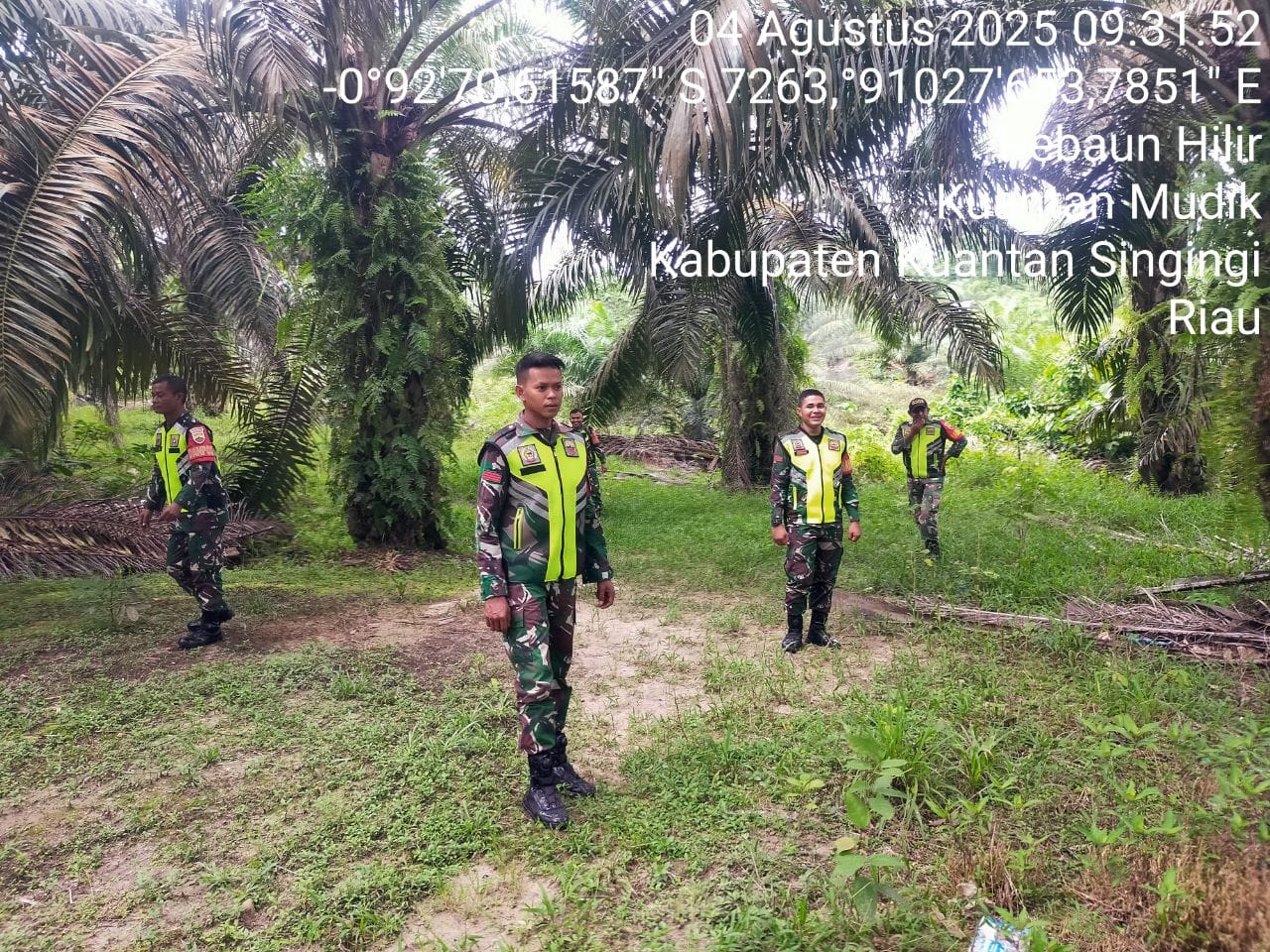 Babinsa Koramil 08/KM Kodim 0302/Inhu Sertu Kadarisman dan Tiga rekan Babinsa Lainnya melaksanakan Kegiatan Patroli Kebakaran Hutan Dan Lahan ( Karhutla ) Di wilayah Desa pebaun hilir Kecamatan Kuantan mudik Kabupaten Kuantan Singingi. Senin ( 04/08/2025 ).