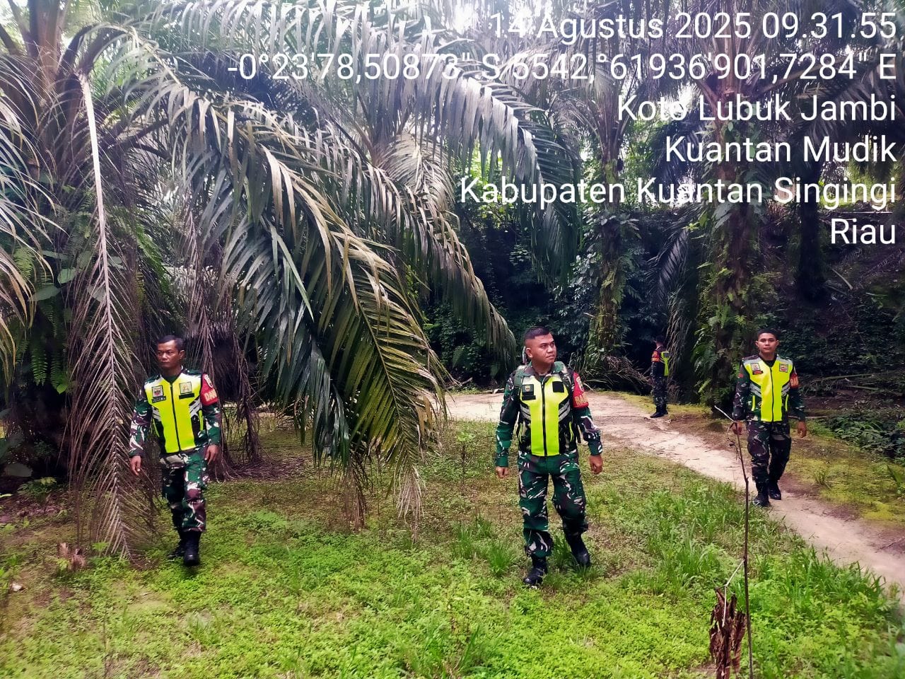 Babinsa Koramil 08/KM Kodim 0302/Inhu Serda Nopin dan Tiga rekan Babinsa Lainnya melaksanakan Kegiatan Patroli Kebakaran Hutan Dan Lahan ( Karhutla ) Di wilayah Desa Koto Lubuk Jambi Kecamatan Kuantan mudik Kabupaten Kuantan Singingi. Kamis ( 14/08/2025 ).