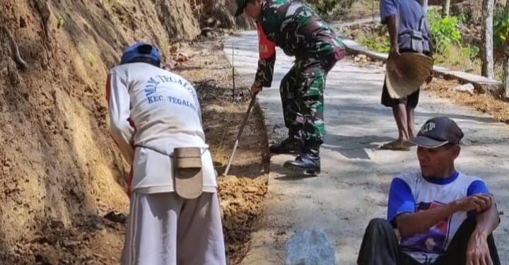 Pacitan – bedanews.com – Serka Zulfikar, Babinsa Koramil 0801/04 Tegalombo, Kodim 0801/Pacitan bersama masyarakat melakukan pemeliharaan sarana fasilitas umum jalan, yang berlokasi di Dusun Dagen, Desa Gemaharjo, Kec. Tegalombo, Kab. Pacitan, Rabu (13/12/2023).