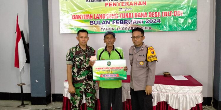 Trenggalek – bedanews.com – Sebuah aksi peduli dan kebersamaan menghiasi Desa Nglongsor, Kecamatan Tugu, Kabupaten Trenggalek pada Rabu (21/2/2024). Ketika Babinsa Nglongsor, Serka Dwianto dari Koramil 0806-09 Tugu bersama Bhabinkamtibmas Desa Nglongsor, Aipda Iswahyudi turut melaksanakan pendampingan dalam penyaluran Bantuan Langsung Tunai (BLT) Dana Desa untuk warga kurang mampu.