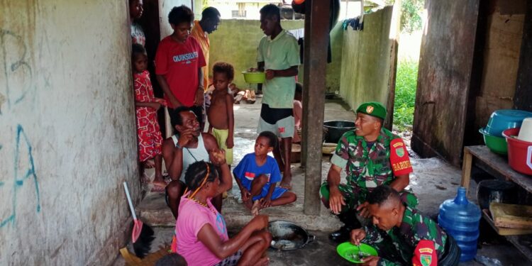 TIMIKA, bedanews.com | Sebagai bentuk kepedulian kepada Keluarga Besar TNI (KBT), Babinsa Koramil 1710-02/Timika memberikan bantuan Sembako kepada keluarga Alm. Serda Falerius, Kamis (10/11/2022). Almarhum merupakan rekan Babinsa yang meninggal dikarenakan sakit beberapa waktu lalu.