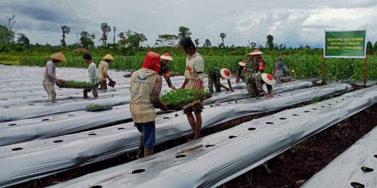 Home » Babinsa Koramil 1710-02/Timika Pelopori Program Ketahanan Pangan Di Wilayah Dengan Mengajak Kelompok Tani Binaan Tanam 7000 Bibit Melon