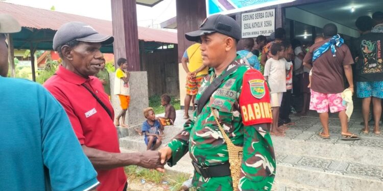 Timika, bedanews.com – Dalam rangka mempererat kemanunggalan TNI dengan rakyat, Babinsa Koramil 1710-07/Mapurujaya, Serka Slamet Riyadi melaksanakan kegiatan komunikasi sosial (komsos) bersama warga Kampung Fanamo, Distrik Mimika Timur Jauh, pada Senin (13/4/2026). Kegiatan komsos tersebut berlangsung dalam suasana hangat, santai, dan penuh keakraban.