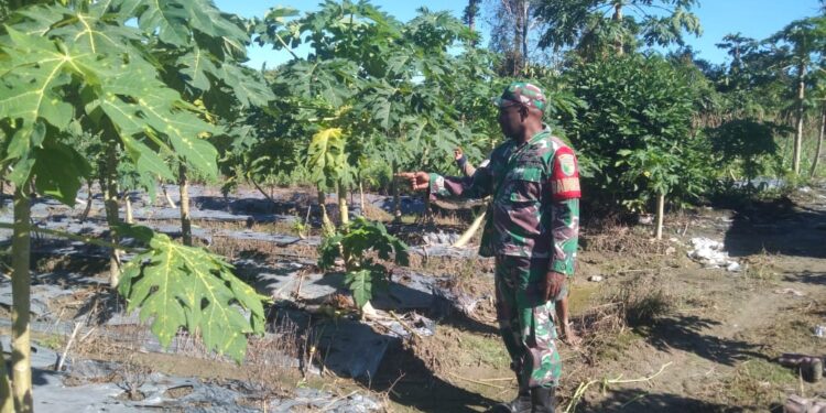 Timika, bedanews.com – Babinsa Koramil 03/Kuala Kencana Kodim 1710/Mimika Koptu Alfaris Kumiyu melaksanakan kegiatan Komunikasi Sosial (Komsos) dengan salah satu petani, Bapak Mahmudi di Kampung Iwaka, Distrik Iwaka, Kab. Mimika, Selasa (23/04/2024).