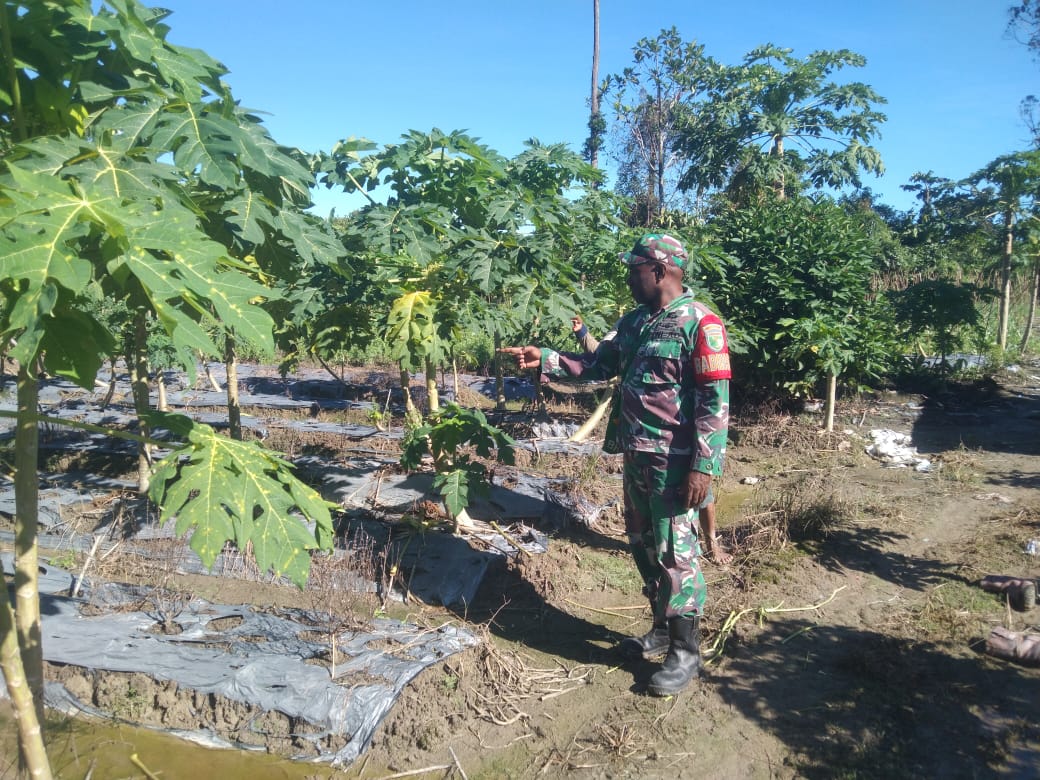 Sebagai Babinsa Koptu Alfaris terus berupa mendorong para petani desa binaannya untuk lebih giat dalam mengelola lahan pertanian.