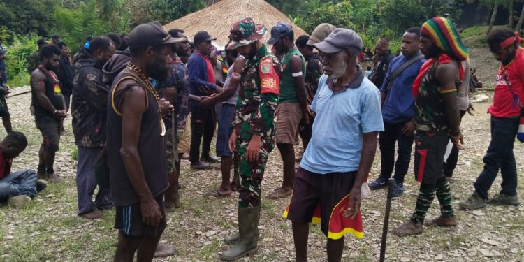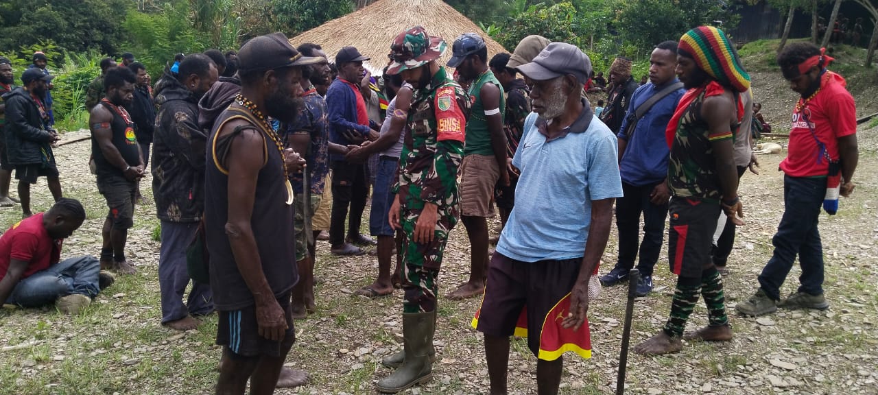 Puncak Jaya – Dalam mewujudkan terjalinnya kerukunan antara masyarakat dan Babinsa Posramil Tingginambut dalam hal ini Serda Steven memberikan bantuan berupa beras dan sembako lainnya kepada masyarakat yang kena musibah atas meninggalnya salah satu warga binaan atas nama Gelembu enumbi.
