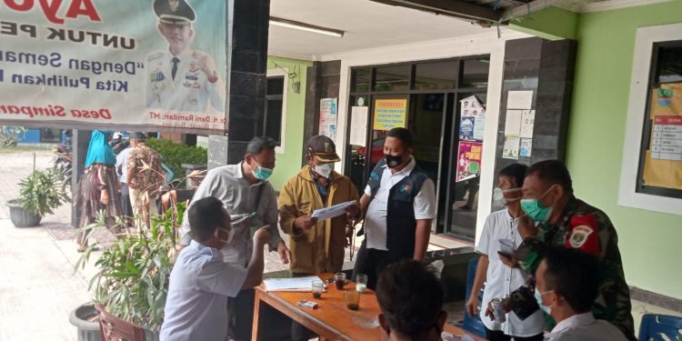 Bekasi – bedanews.com – Babinsa Desa Simpangan, Kec Cikarang Utara, Kab Bekasi, Serka M. Ropii Lubis melaksanakan komsos dengan aparatur pemerintahan Desa Simpangan dan Ketua RT RW dan kepala dusun membahas tentang pelayanan kepada warga yang mau melaksanakan vaksinasi yang pertama dan kedua untuk mencocokan data yang belum di vaksin, Jum’at (29/10).