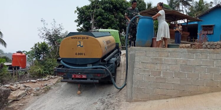 Trenggalek – bedanews.com – Sebuah aksi solidaritas luar biasa terjadi di wilayah Kecamatan Panggul, Kabupaten Trenggalek, ketika Babinsa Koramil 0806/11 Panggul, Serka Suharjo, bersama-sama dengan petugas PDAM (Perusahaan Daerah Air Minum) Trenggalek, berkolaborasi untuk menyediakan bantuan air bersih bagi warga yang terdampak kekeringan. Kegiatan ini merupakan langkah nyata dalam membantu masyarakat yang membutuhkan di saat sulit ini, Jum’at (27/10/2023).