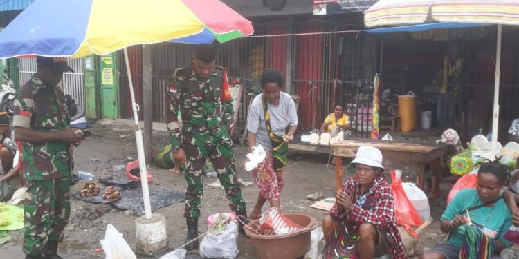 Timika, bedanews.com — Dalam rangka menjalin komunikasi yang baik dan demi membantu perekonomian warga, Babinsa Koramil 1710-02/Timika melakukan kegiatan Komsos ke Pasar Tradisional, Kel. Koperapoka, Distrik Mimika Baru, Kabupaten Mimika, Rabu (5/7/2023).