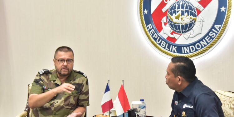Jakarta – Kepala Bakamla RI Laksdya TNI Dr. Irvansyah, S.H., M.Tr.Opsla., menerima kunjungan kehormatan dari Atase Pertahanan Prancis Colonel Sven Meic serta Wakil Athan Lieutenant Colonel Olivier Cam. Pertemuan berlangsung di Aula Ary Hasibuan Mabes Bakamla RI, Jakarta Pusat, Kamis (22/02/2024).
