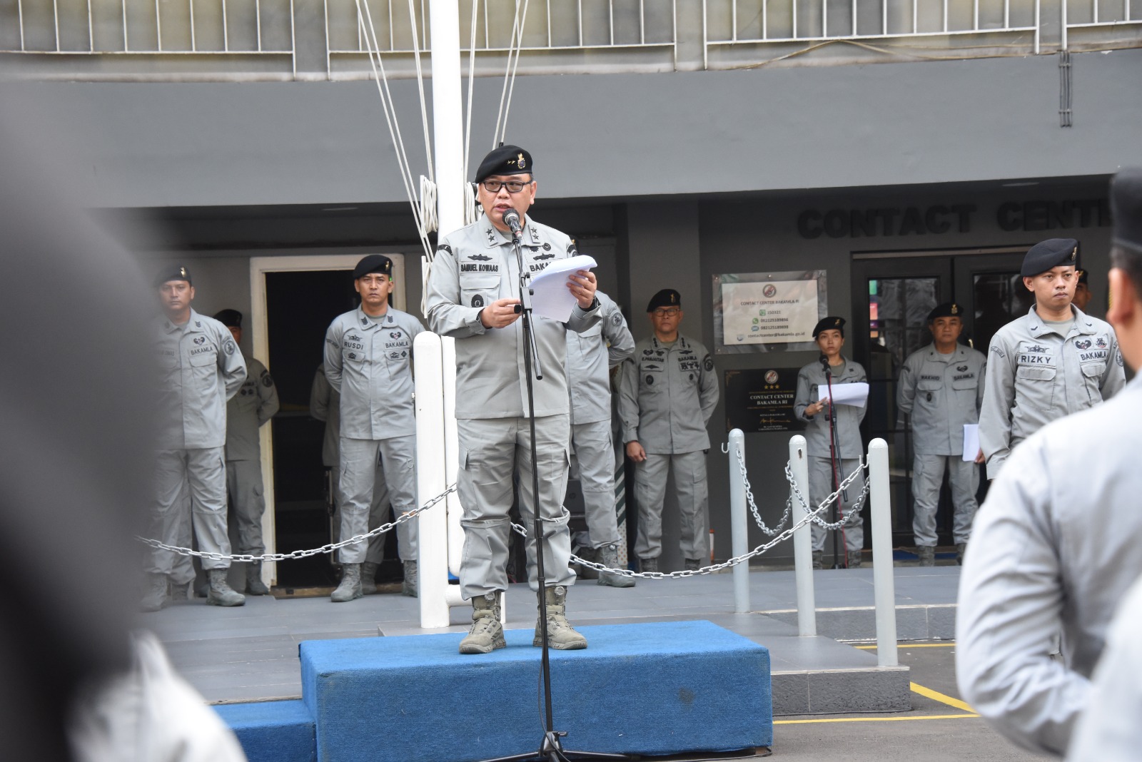 Jakarta – Bakamla RI melaksanakan upacara Peringatan Hari Lahir Pancasila, bertindak selaku Inspektur Upacara adalah Deputi Informasi, Hukum dan Kerjasama Laksda Bakamla Samuel H. Kowaas, M.SC.,CSBA., dan diikuti seluruh personel Bakamla yang berdinas di Jakarta bertempat di lapangan apel Mabes Bakamla RI,Jakarta, Kamis (1/6/2023).