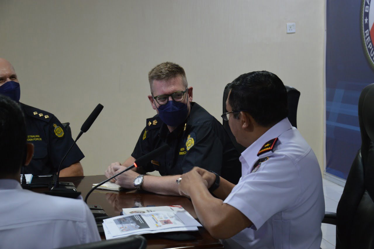 Kunjungan Leighton Morvell yang didampingi Inspector Keven Gray dan Mr. Karl Brandt ini dalam rangka silahturahmi dan melakukan kolaborasi program kerja antara kegiatan ABF dengan Bakamla RI terlebih kegiatan yang memiliki tujuan yang sama dalam hal keamanan maritim dan kawasan perbatasan Indonesia-Australia.