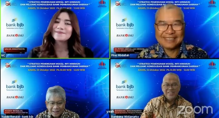 Hal itu disampaikan Direktur Utama bank bjb Yuddy Renaldi saat menjadi pembicara pada acara webinar “Strategi Pemenuhan Modal Inti Minimum dan Peluang Konsolidasi Bank Pembangunan Daerah”, Kamis (13/10/2022). Hadir memberikan keynote speaker Deputi Komisioner Pengawas Perbankan II OJK Bambang Widjanarko.