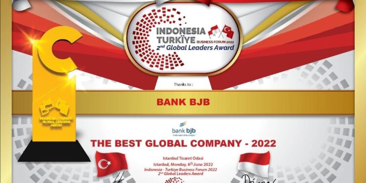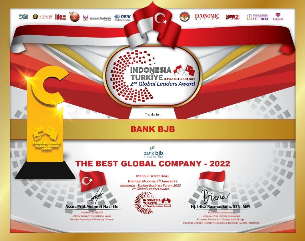 BANDUNG || – bank bjb kembali mencatatkan prestasi gemilang dengan meraih penghargaan The Best Global Company 2022 dalam ajang internasional Indonesia-Turkiye Global Leaders Business Forum & Award II 2022.