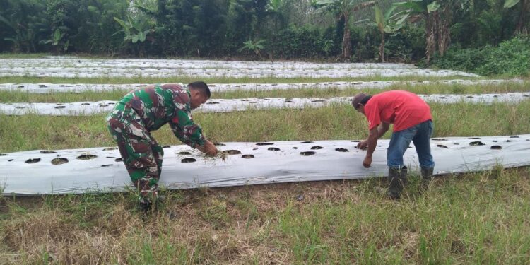 Timika, bedanews.com — Wujud dukungan terhadap program pemerintah dalam rangka meningkatkan ketahanan pangan di wilayah, Babinsa Koramil 1710-07/Mapurujaya Sertu Yulius Nampe terus melaksanakan pendampingan kepada para petani di wilayah binaan, kali ini mereka sedang mendampingi bapak Roni (35th) yang merupakan petani Semangka dan Labu di Kampung Muare, Distrik Mimika Timur, Kab. Mimika, Rabu (03/05/2023).