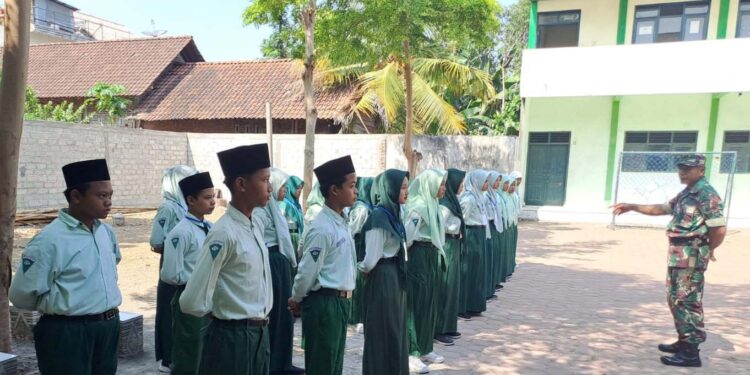 TRENGGALEK || bedanews.com – Bati Wanwil Koramil 0806-02 Pogalan, Kodim 0806/Trenggalek, Serma Muyanto, berpartisipasi dalam kegiatan Latihan Dasar Kepemimpinan (LDK) dengan memberikan materi teori Peraturan Baris Berbaris (PBB) kepada anggota Organisasi Siswa Intra Madrasah (OSIM) MTs As Syafi’iyah Pogalan, Kecamatan Pogalan, Kabupaten Trenggalek, Kamis (13/6/2024).