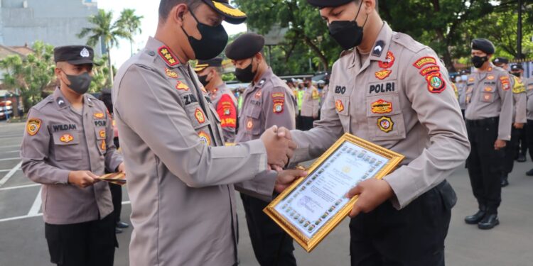 Penghargaan tersebut diserahkan Kapolres secara langsung saat apel pagi di lapangan Mapolres Metro Tangerang Kota, Senin (12/12/2022).