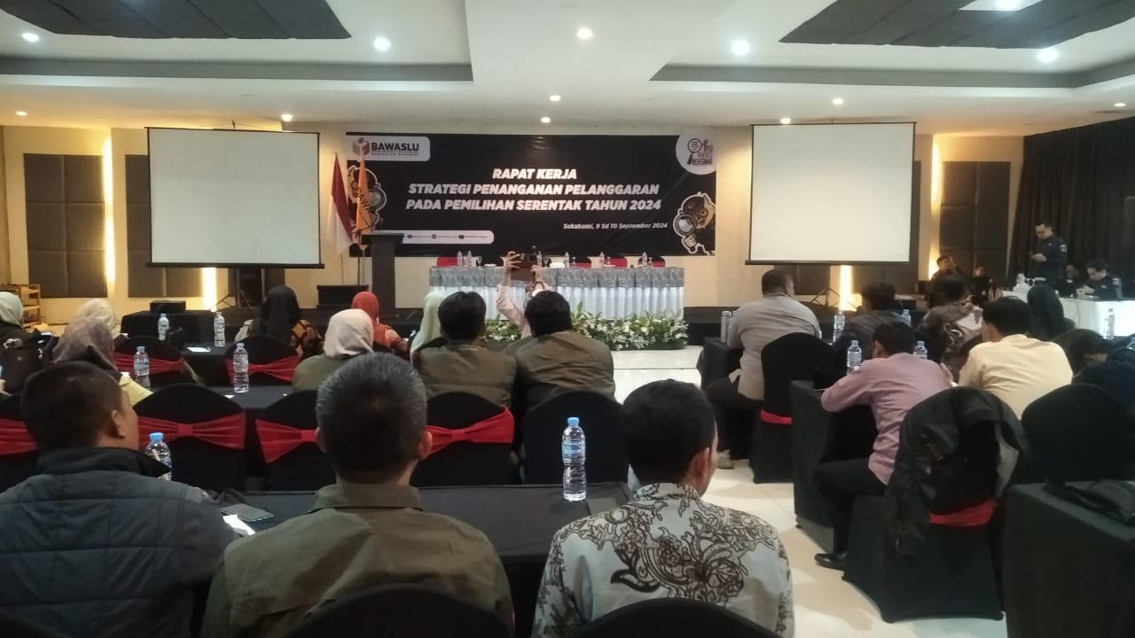 SUKABUMI || Bedanews.com – Badan Pengawas Pemilihan Umum (Bawaslu) Kabupaten Sukabumi menggelar Rapat Kerja Strategi Penanganan Pelanggaran Pemilihan Gubernur dan Wakil Gubernur, Bupati dan Wakil Bupati, serta Walikota dan Wakil Walikota Tahun 2024, selama dua hari dari Senin – Selasa (09/s/d 10/09/2024).