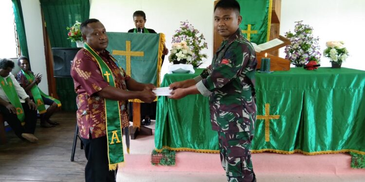 Diketahui saat ini yang sudah berdiri beberapa pondasi, namun tidak berlanjut dikarenakan di lokasi kampung Dabra segalanya serba mahal. “Disaat kondisi saat ini, kita Satgas turut andil mensupport pembangunan rumah bapak pendeta Pendeta Mimin Warisal dengan memberikan bantuan yang berguna,” ucapnya.