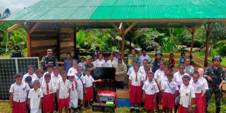 Keerom – bedanews.com – Satgas Pamtas RI-PNG Yonif 126/KC Pos Yuruf memberikan kejutan yang membahagiakan kepada masyarakat perbatasan dengan membangun fasilitas nonton bersama bagi masyarakat Kampung Yuwainda, Distrik Yaffi, Kabupaten Keerom.